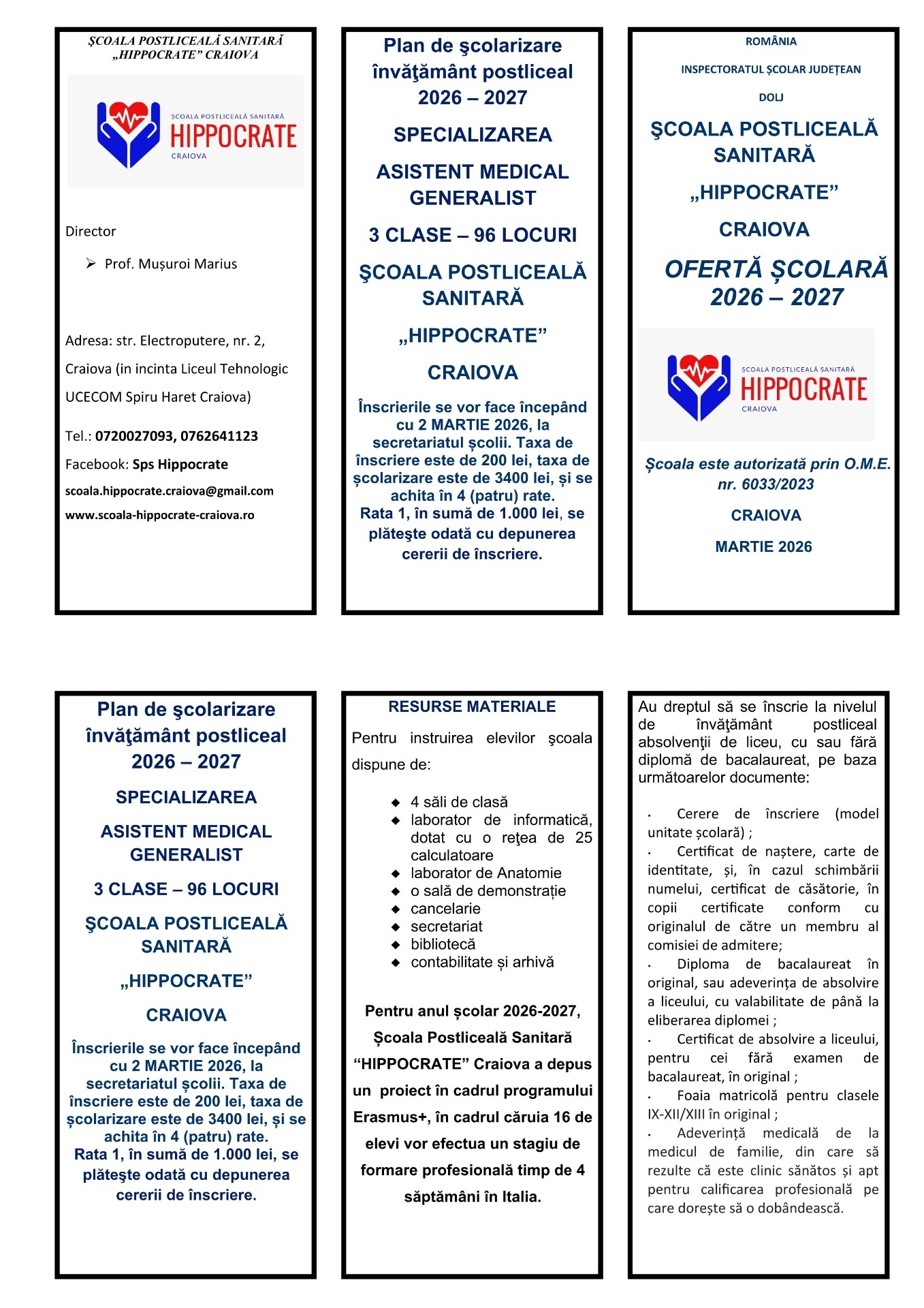 AN ȘCOLAR 2026- 2027Şcoala Postliceală Sanitară "Hippocrate" Craiova oferă elevilor un învăţământ preuniversitar de calitate, postliceal, nivel 5: